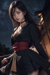 Black dress, red sash